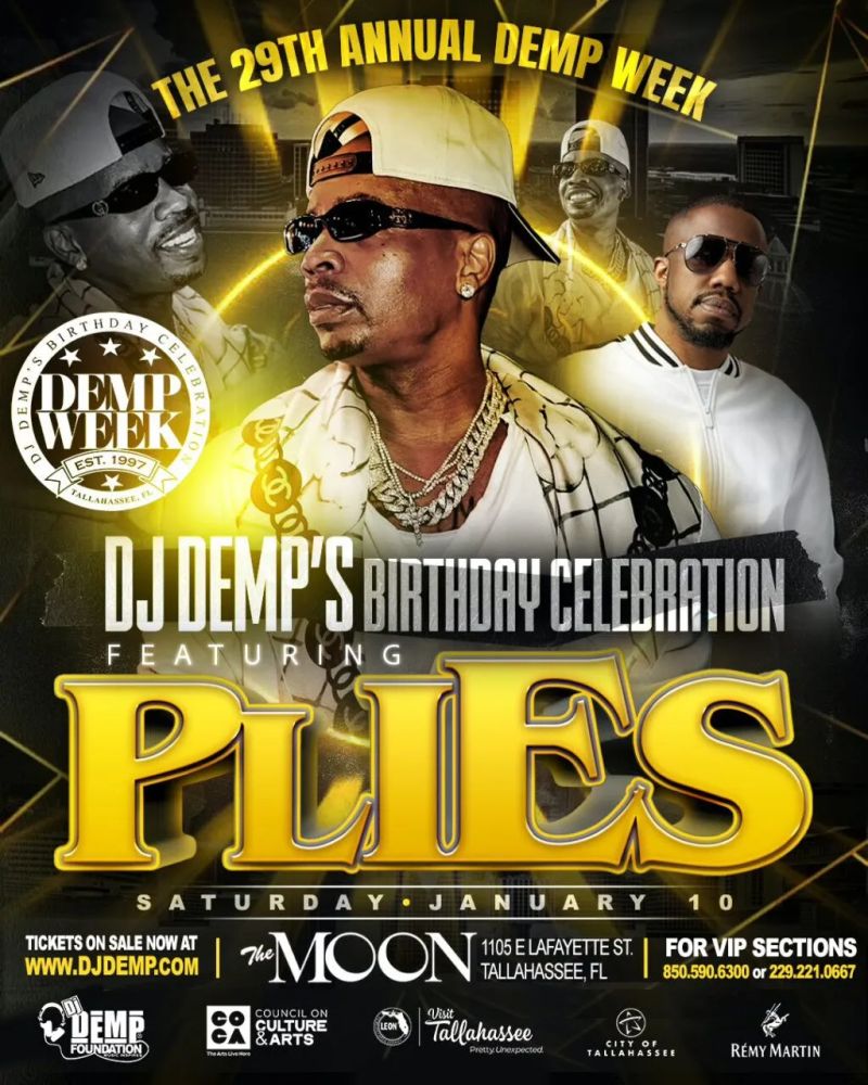 Get ready to party with the ultimate Tallahassee nightlife tradition as DJ DEMP celebrates his birthday with a massive performance featuring Plies. This star-studded event at The Moon promises an electric atmosphere and an unforgettable night of hip-hop. Make sure to arrive early to secure a good spot and enjoy the full experience. Tickets can be purchased at the door or via ConcertFix. Don't miss out on this fantastic night of music and celebration!